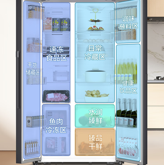 自选变温区:蔬果/冰温/软冻三模式一键切换;