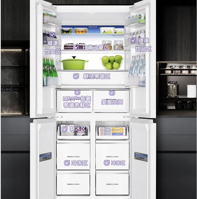 性价比王:美的熊墩墩系列603十字门零嵌冰箱,美的全能顶配机皇,多口之家的挑剔之选。